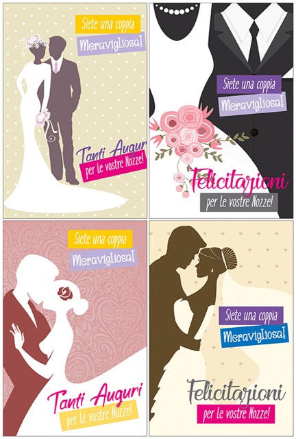 Busta di colore bianco Biglietto e busta cellophanati singolarmente con materiale antistatico Confezionati in scatole in acetato trasparente da 12 biglietti assortiti in 4 soggetti
