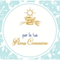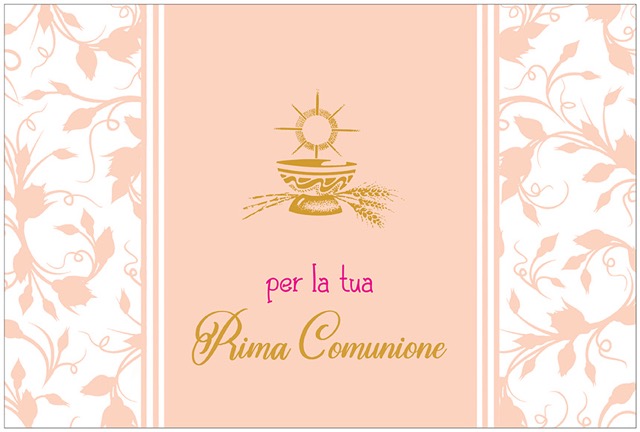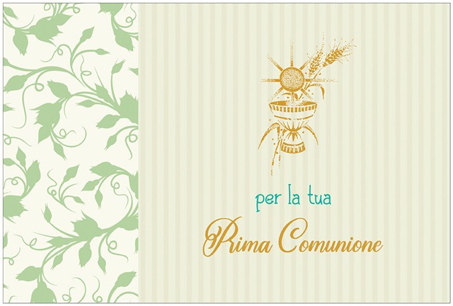 Biglietto augurale per Comunione, con nobilitazione glitter, lamina oro, tasca interna porta soldi.