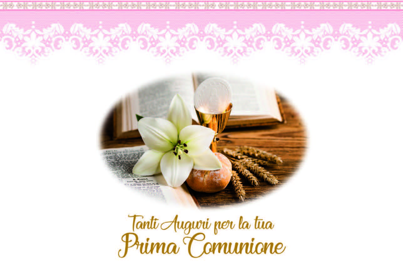 Biglietto augurale per Comunione, con nobilitazione stampa a caldo, portasoldi.