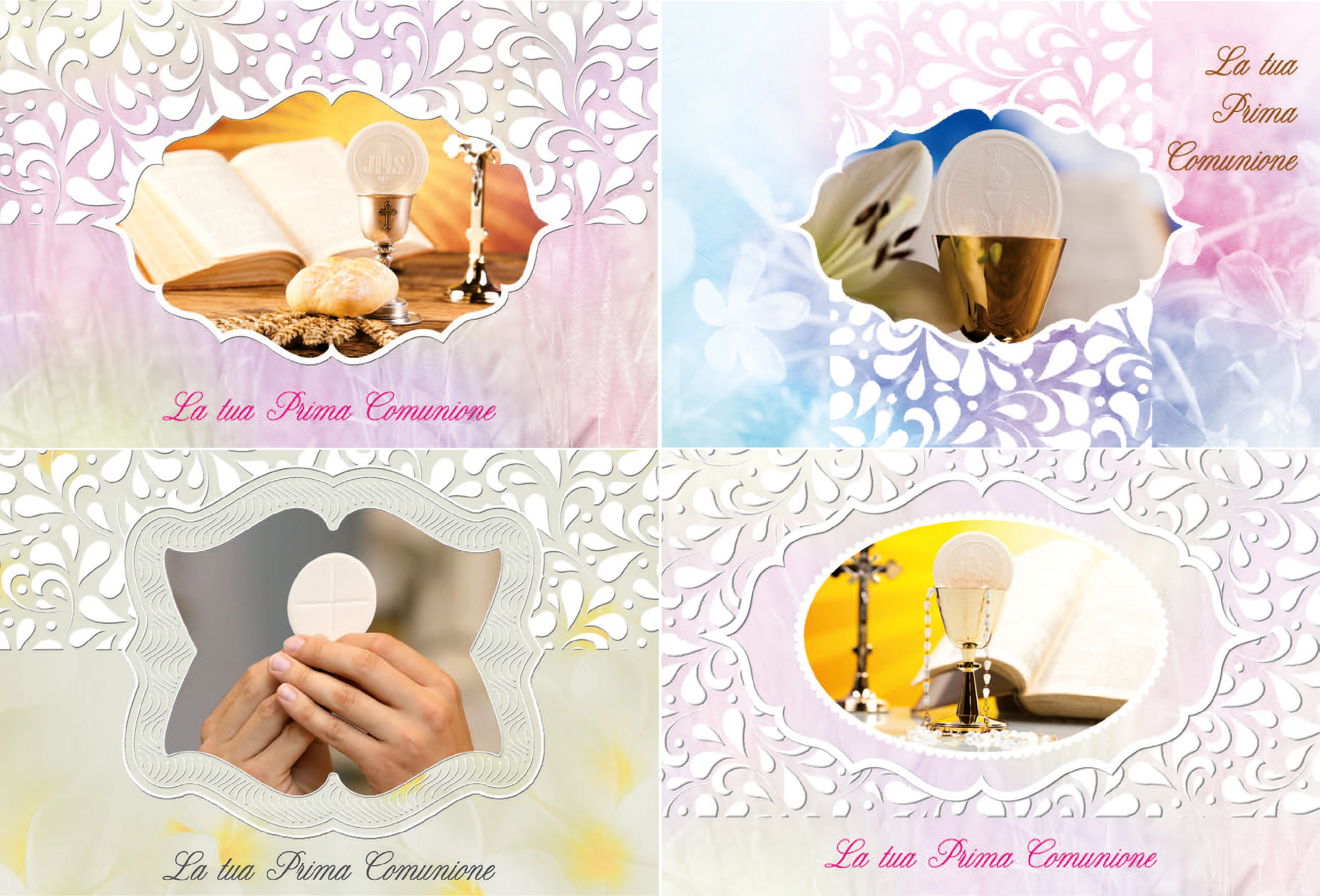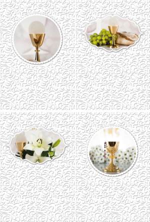 Foglio A4 contenente 20 talloncini prefustellati bomboniera, per Comunione, con decori stampa a caldo, personalizzabili con stampanti comuni.