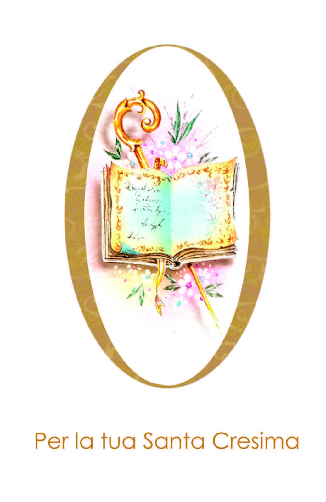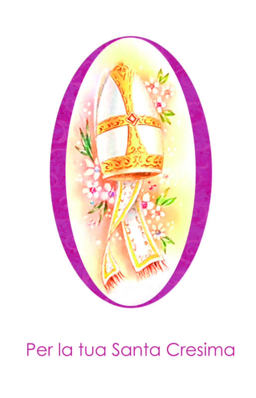 Biglietto augurale formato petit, per Cresima, con nobilitazione glitter.