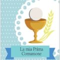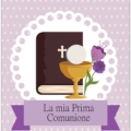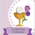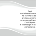 Biglietto augurale per Comunione, con nobilitazione glitter, testo interno e stampa interna.