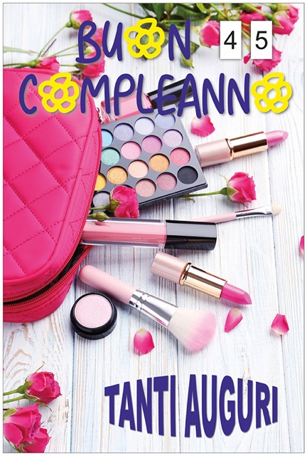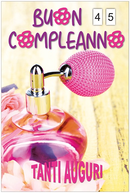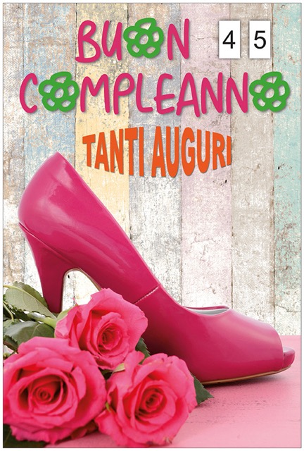 Biglietto augurale di buon compleanno, con nobilitazione glossy, tiret per cambio numeri 0 – 9.
