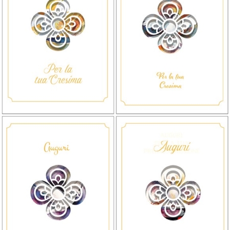 Busta di colore bianco Biglietto e busta cellophanati singolarmente con materiale antistatico Confezionati in scatole in acetato trasparente da 12 biglietti assortiti in 4 soggetti